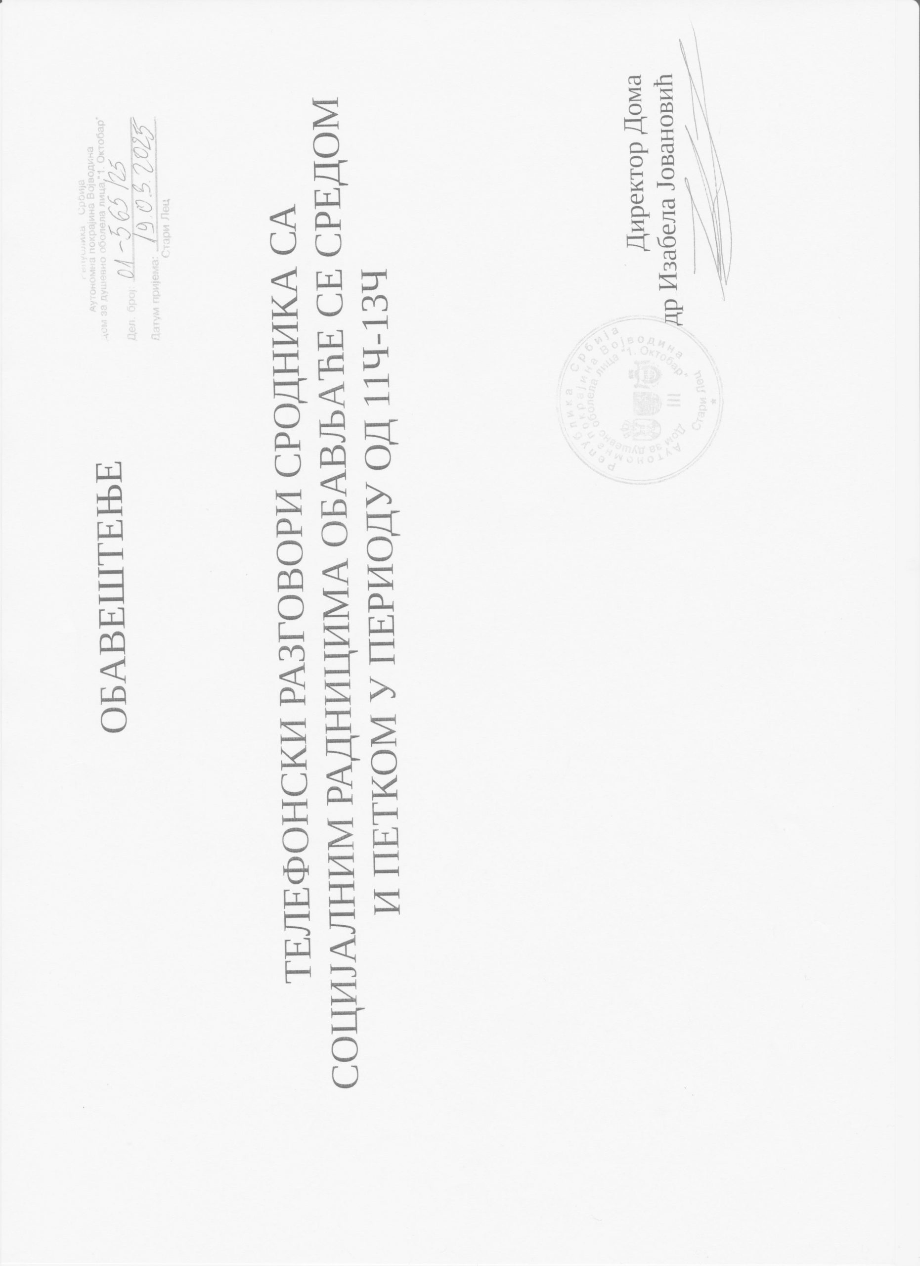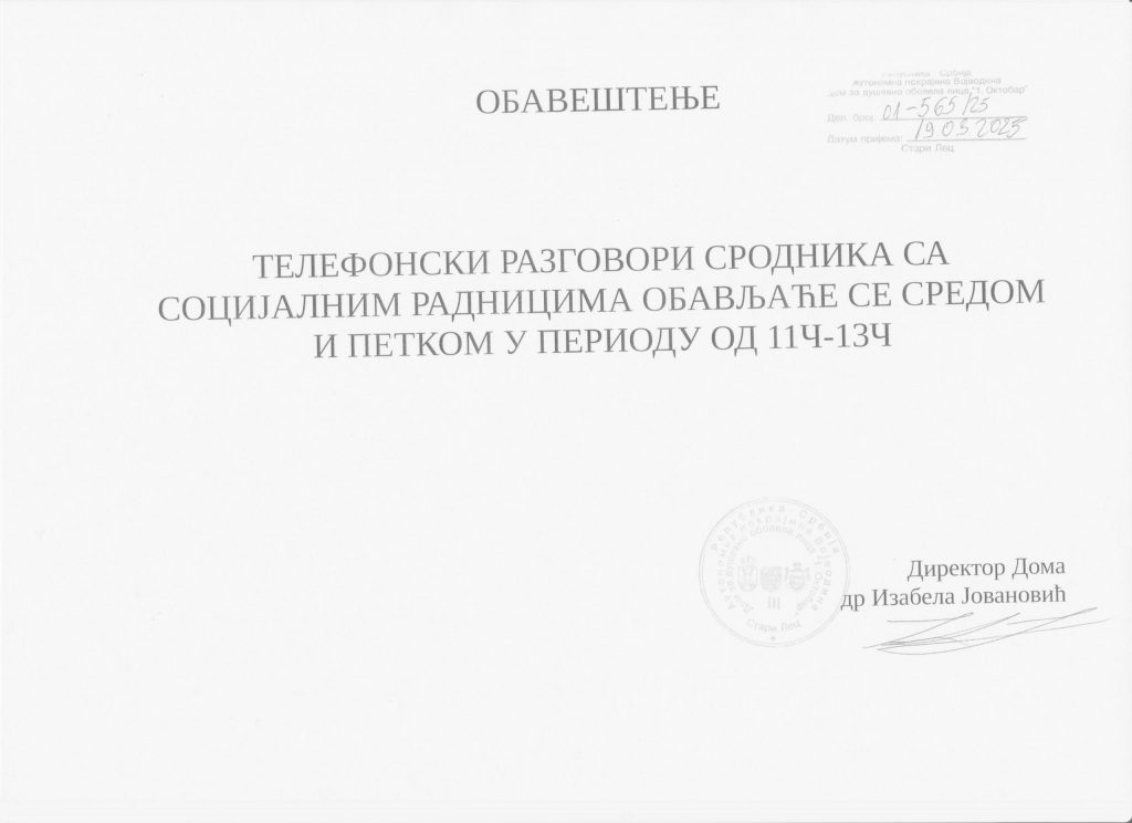У супротном све посете ван наведеног термина неће бити реализоване (посете је потребно најавити код социјалних радника дан раније).
